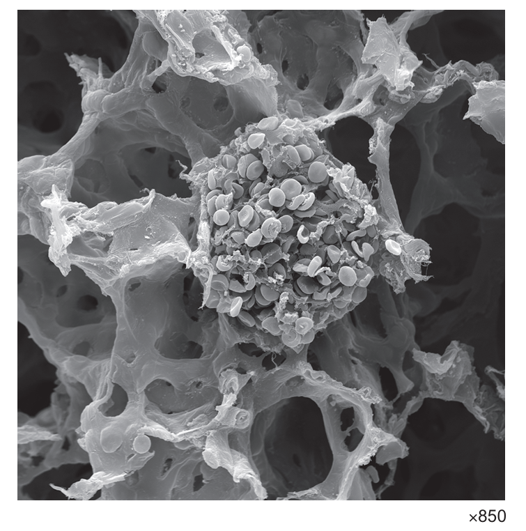 The question describes a micrograph showing flattened cells (squamous epithelium) and distinctive biconcave red blood cells. Since SEM shows surface features and TEM shows internal structures, and the description matches lung alveoli, B is correct.