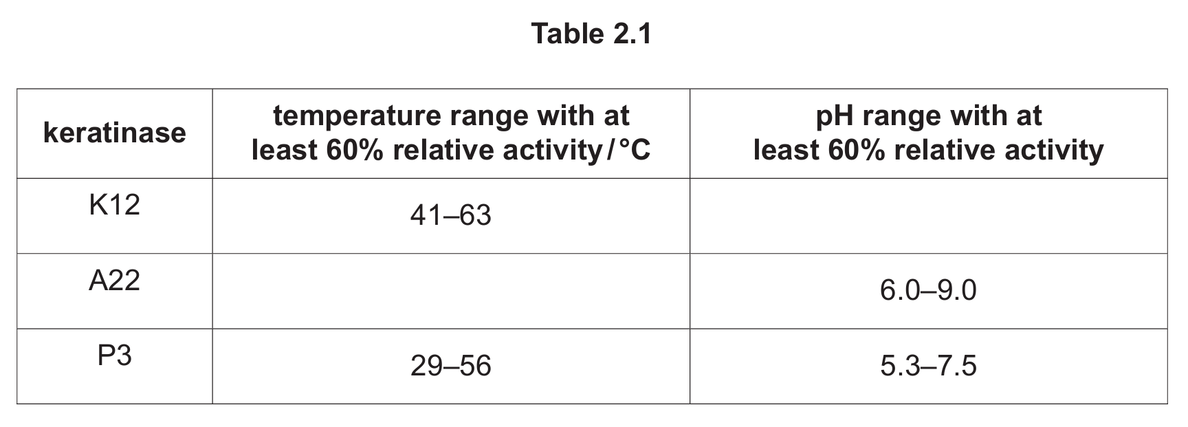 (c) Proteases known as keratinases vary in the extent to which they can hydrolyse keratin.