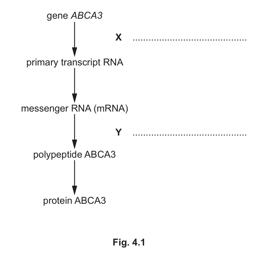 (i) Fig. 4.1 shows the flow of genetic information in the production of ABCA3.