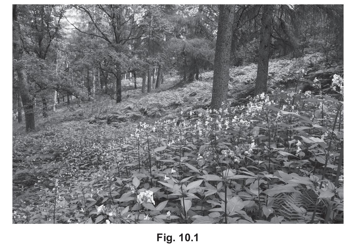 Fig. 10.1 shows Himalayan balsam growing in a woodland.