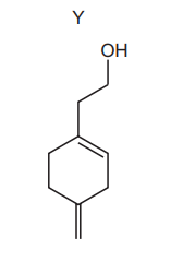 Two of the rings, X and Y, contain a C=C bond. Which row is correct?