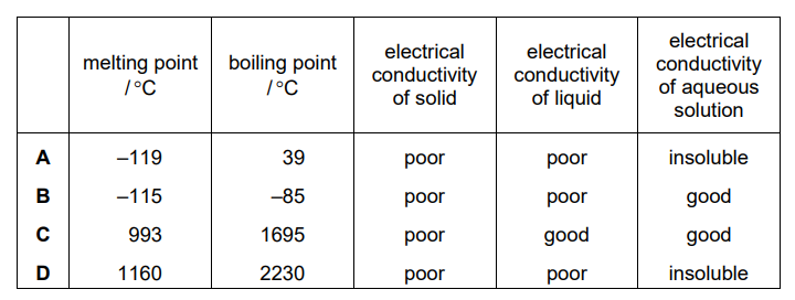 The table shows the physical properties of four substances. Which substance has a giant covalent structure?