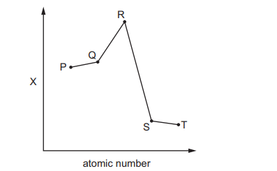 The relative magnitude of the property X of five elements is shown. P, Q, R, S and T are all in Period 3 and have consecutive atomic numbers. The letters are not the actual chemical symbols of the elements.