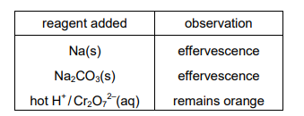 X is an organic compound containing the elements carbon, hydrogen and oxygen only. The table shows the observations made from three chemical tests carried out on X.