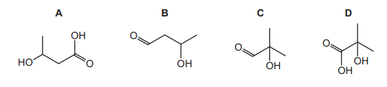 1. Iodoform Test (Alkaline \(I_2\)): Propanone (a methyl ketone) reacts with alkaline \(I_2\) to form a yellow precipitate of iodoform (\(CHI_3\)), giving a positive test. 2. Other Reagents: – B (Aqueous bromine): No reaction with propanone. – C (Fehling’s) and D (Tollens’): Only react with aldehydes, not ketones like propanone. Thus, only alkaline \(I_2\)(aq) (Option A) gives a positive result.