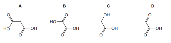 The product is ethanedioic acid (oxalic acid), with the skeletal formula B (HOOC–COOH).