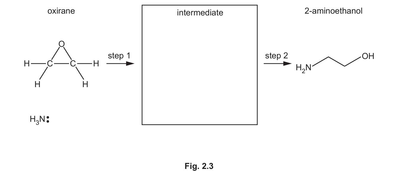 (i) Suggest the mechanism for step 1 of the reaction of oxirane with ammonia in Fig. 2.3.