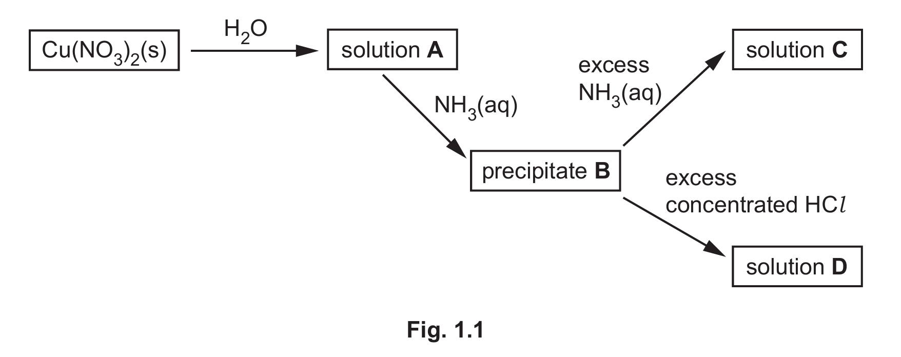 Fig. 1.1 shows some reactions of solution A.