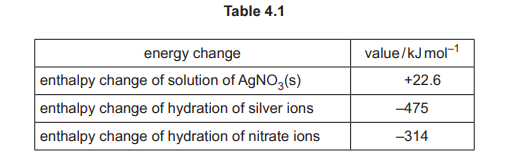 (d) Some relevant energy changes for AgNO₃ are shown in Table 4.1.