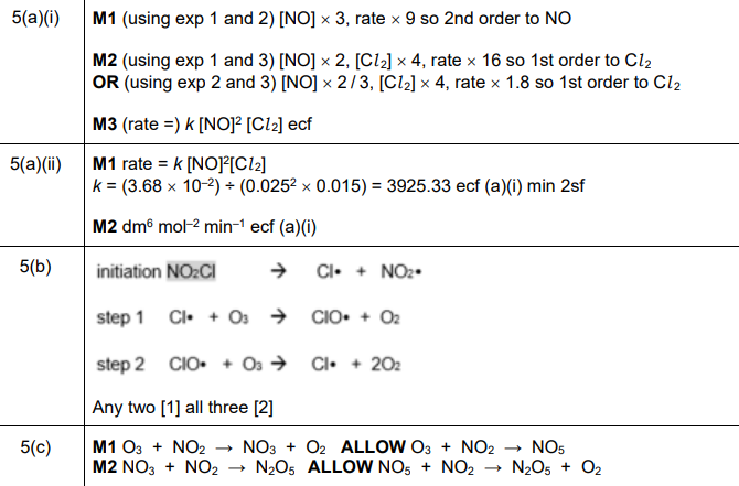 The initial rate of this reaction is investigated, starting with different concentrations of NO and Cl₂. The results obtained are shown in Table 5.1.