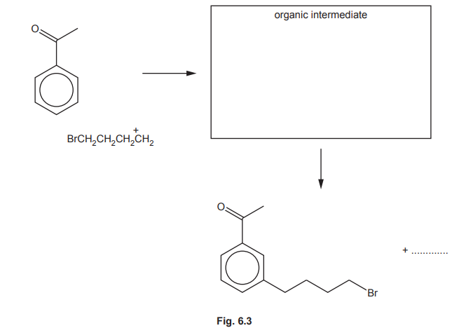 One of the steps in this synthesis is the electrophilic substitution reaction of carbon dioxide with the phenoxide ion, C₆H₅O⁻. Complete the mechanism in Fig. 9.3 for the reaction of C₆H₅O⁻ with \(CO_2\). Include all relevant curly arrows, dipoles and charges. Draw the structure of the organic intermediate.