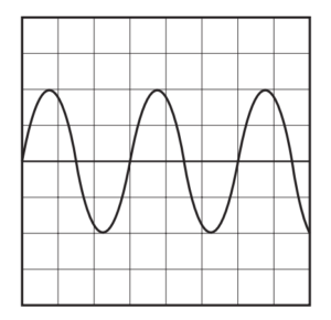A sound wave is displayed on the screen of a cathode-ray oscilloscope, as shown.