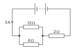 A battery is connected to three resistors of resistances 12Ω, 6Ω and 2Ω, as shown.