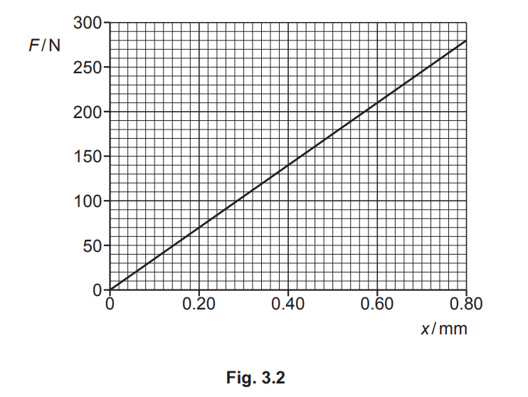 (c) The variation with extension x of the tension F in the wire in (b) is shown in Fig. 3.2.
