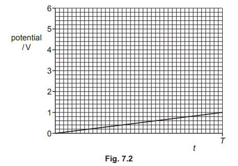 where V is the p.d. in volts and t is the time in seconds.