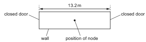 A corridor is 13.2 m long and has closed doors that reflect sound at both ends. The speed of sound in the air in the corridor is \(330 m s^{–1}.