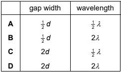 Water waves of wavelength \(\lambda\) are formed in a ripple tank. The waves are diffracted as they pass through a narrow gap of width d (d is greater than \(\lambda \)).