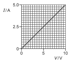 A piece of wire has a length of 0.80 m and a diameter of \(5.0\times 10^{-4}m\). The I–V characteristic of the wire is shown.