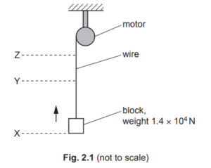 A motor uses a wire to raise a block, as illustrated in Fig. 2.1.