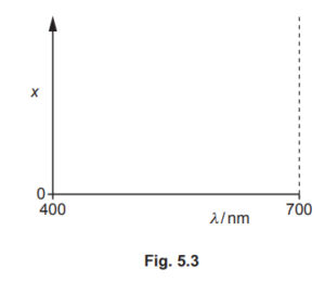 On Fig. 5.3, sketch a graph to show the variation of \(x\) with \(\lambda\) from \(\lambda=400 \mathrm{~nm}\) to \(\lambda=700 \mathrm{~nm}\). Numerical values of \(x\) are not required.