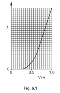 (b) The variation with potential difference V of the current I in a semiconductor diode is shown inFig. 6.1.
