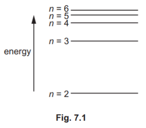Calculate the energy, in J, of energy level n = 3. energy = ……………………………………………… J [3] [Total: 7]