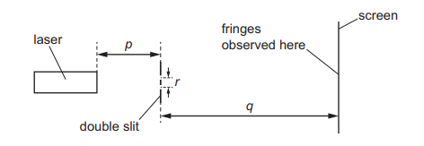 A student sets up an experiment to investigate double-slit interference. The student uses light of a single wavelength from a laser to illuminate a double slit so that a pattern of interference fringes is observed on the screen.