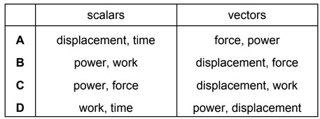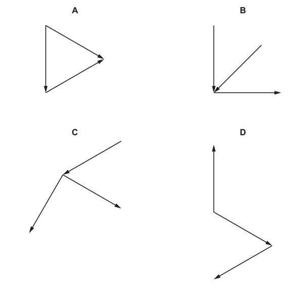 Four combinations of vectors are shown, each representing all the forces acting on an object.