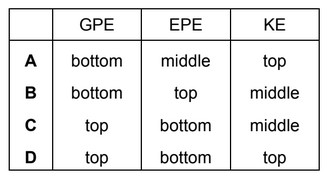 At which points in the path of the mass do the gravitational potential energy of the mass (GPE),