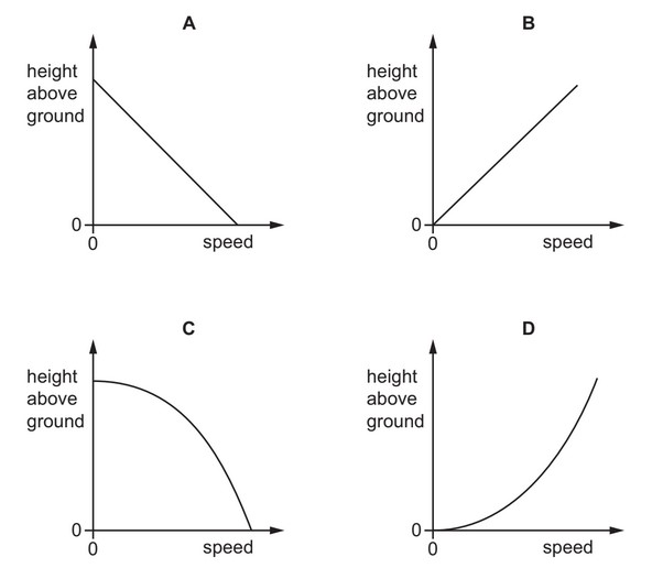 Which graph shows the variation with speed of the height of the ball above the ground?