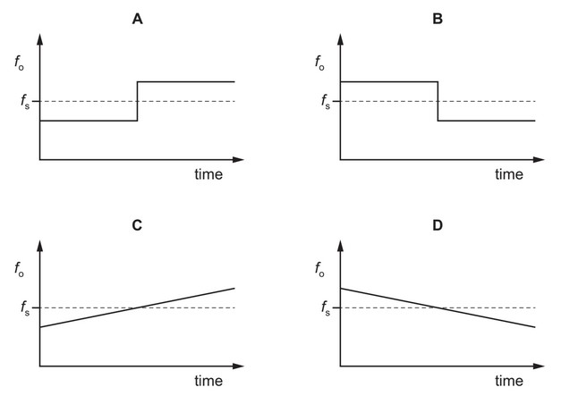 Which graph represents the variation with time of the frequency \(f_o\) of the sound heard by the