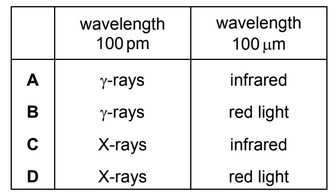 What are the names of the electromagnetic waves that have wavelengths in a vacuum of 100 pm