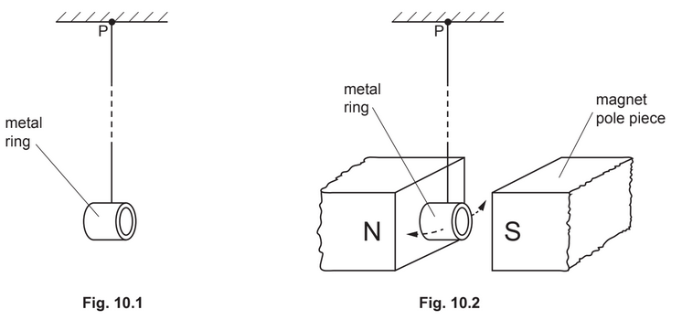(b) A metal ring is suspended from a fixed point P by means of a thread, as shown in Fig. 10.1.