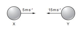 Two balls X and Y are moving towards each other with speeds of 5 \(m s^{–1}\) and 15 \(m s^{–1}\) respectively.