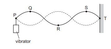 A stationary wave on a stretched string is set up between two points P and T.