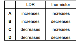 The intensity of light incident on a light-dependent resistor (LDR) is increased. The temperature of a thermistor is increased. In each case, the current in the component is maintained at a constant value. What happens to the potential difference across each component?
