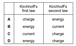 Kirchhoff’s first and second laws are consequences of the conservation of different quantities. What are those quantities?