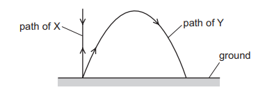 Projectile X is fired vertically upwards and projectile Y is fired at an angle to the horizontal. Air resistance is negligible. Which statement is correct?