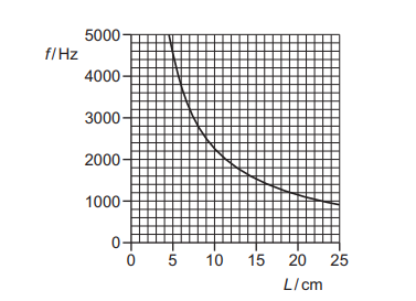 The graph shows the variation of the frequency f of the stationary sound wave with the length L of the tube.