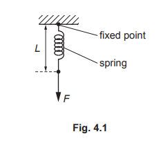 A spring is suspended from a fixed point at one end and a vertical force is applied to the other end, as shown in Fig. 4.1.