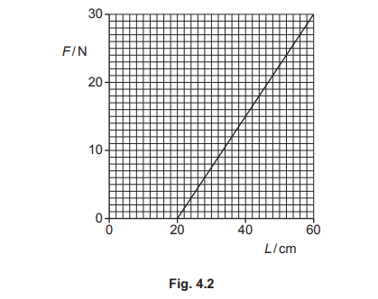 The variation of the applied force F with the length L of the spring is shown in Fig. 4.2.