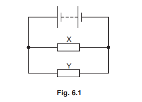 (b) A battery is connected to two resistors X and Y, as shown in Fig. 6.1.