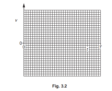 (c) The ball leaves the man’s hand at time t = 0 and hits the ground at time t = T. On Fig. 3.2, sketch a graph to show the variation of the velocity v of the ball with time t from t = 0 to t = T. Numerical values of v and t are not required. Assume that v is positive in the upward direction.