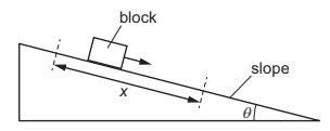 The slope surface exerts a constant frictional force on the box.