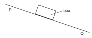 A box in air slides with increasing speed down a rough slope from point P to point Q.