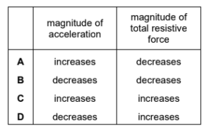 As the box moves from P to Q, there are changes to the magnitudes of its acceleration and the total resistive force acting on it.