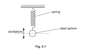 A small steel sphere is oscillating vertically on the end of a spring, as shown in Fig. 4.1.
