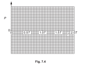 On Fig. 7.4, sketch the variation of P with t between t = 0 and t = 2.0T.