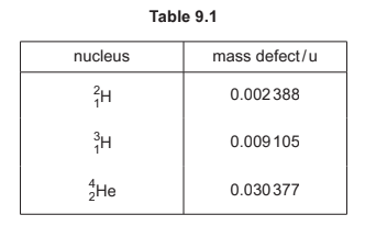(b) Table 9.1 shows the mass defects of three nuclei.