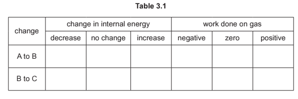 (i) Complete Table 3.1 for the changes A to B and B to C by placing two ticks (3) in each row.
